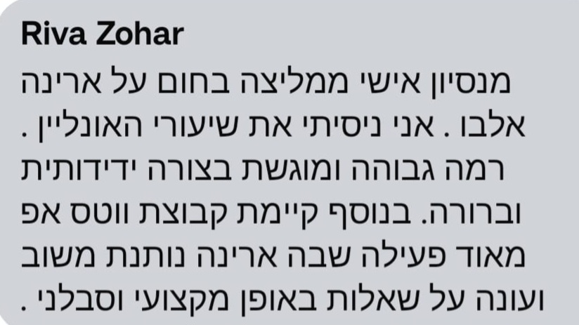 קבוצת פייסבוק סגורה שבה אני עונה על שאלות ונותנת ביקורות וטיפים פרטניים